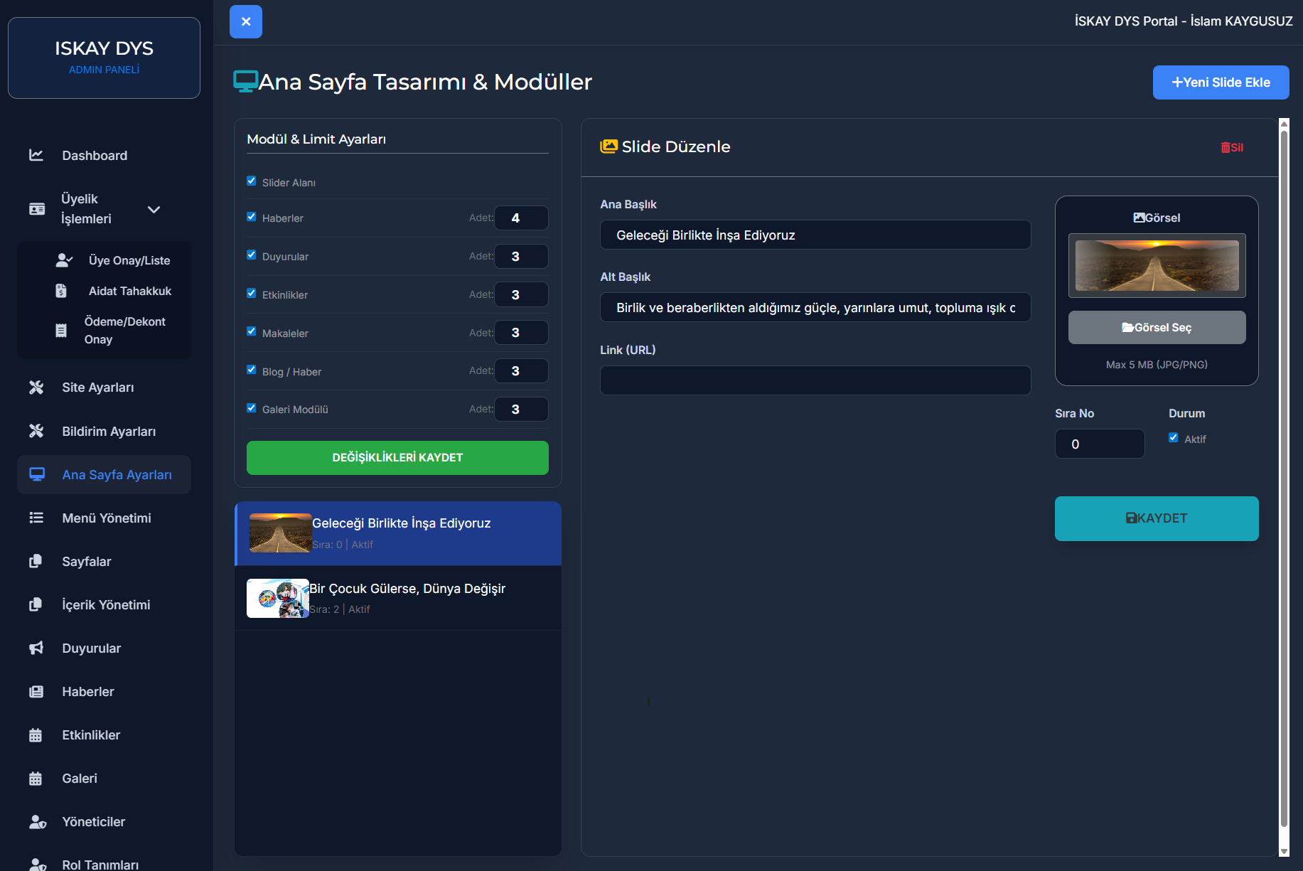 Haber Yönetimi & Slider Manşet