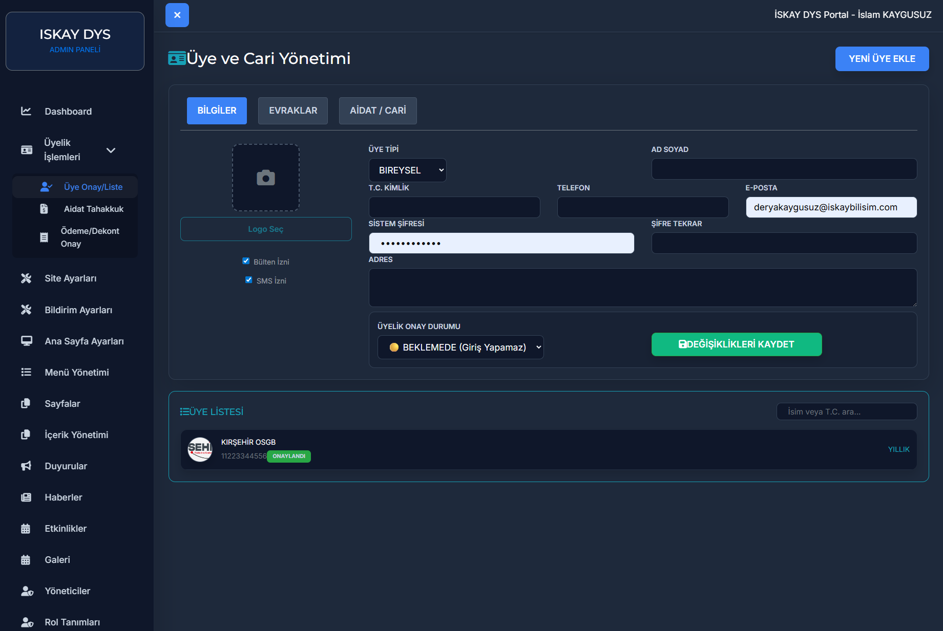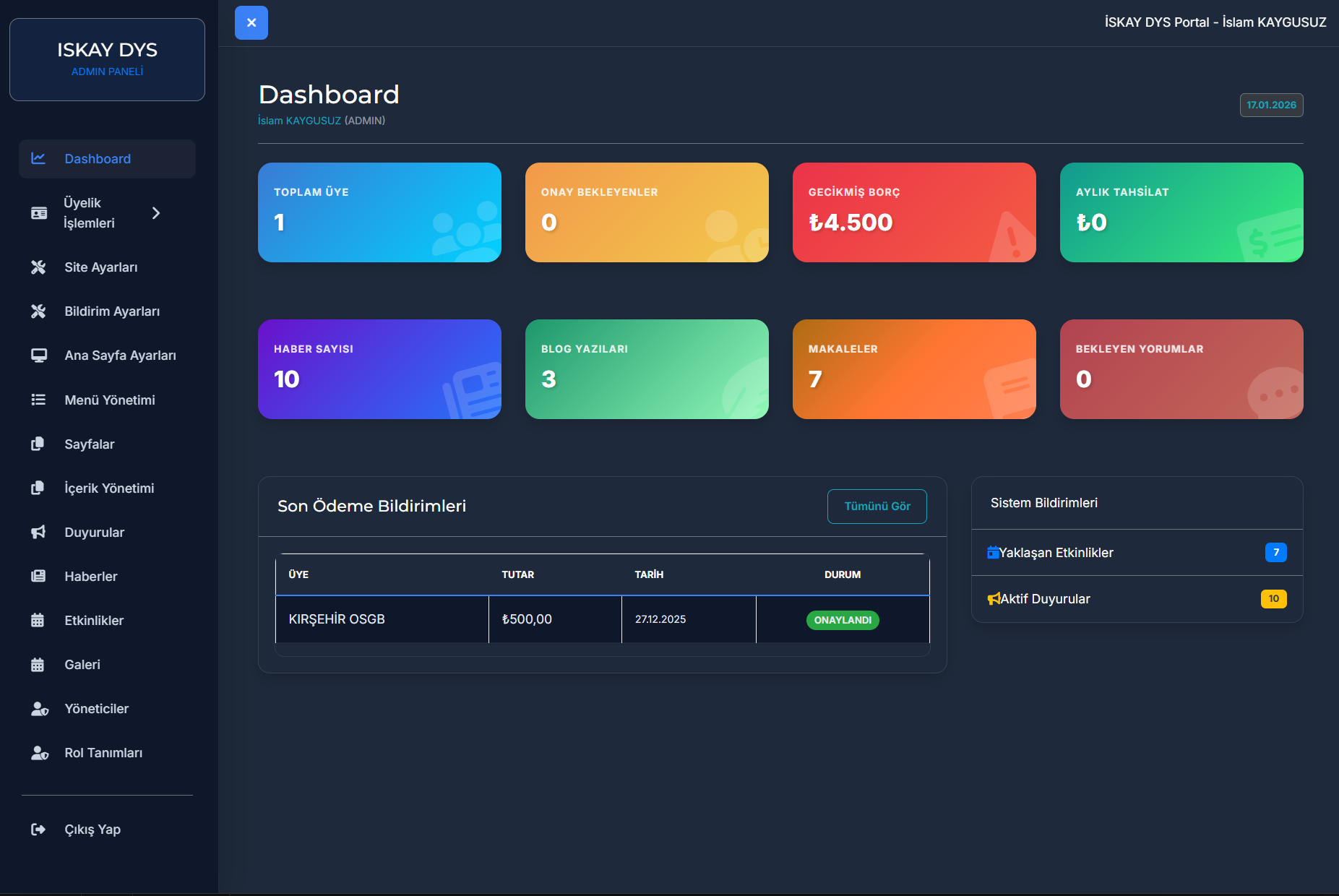 Teknik bilgiye ihtiyaç duymadan sitenizi ve dernek üyelerinizi yönetebileceğiniz, tamamen Türkçe ve mobil uyumlu yönetim paneli.