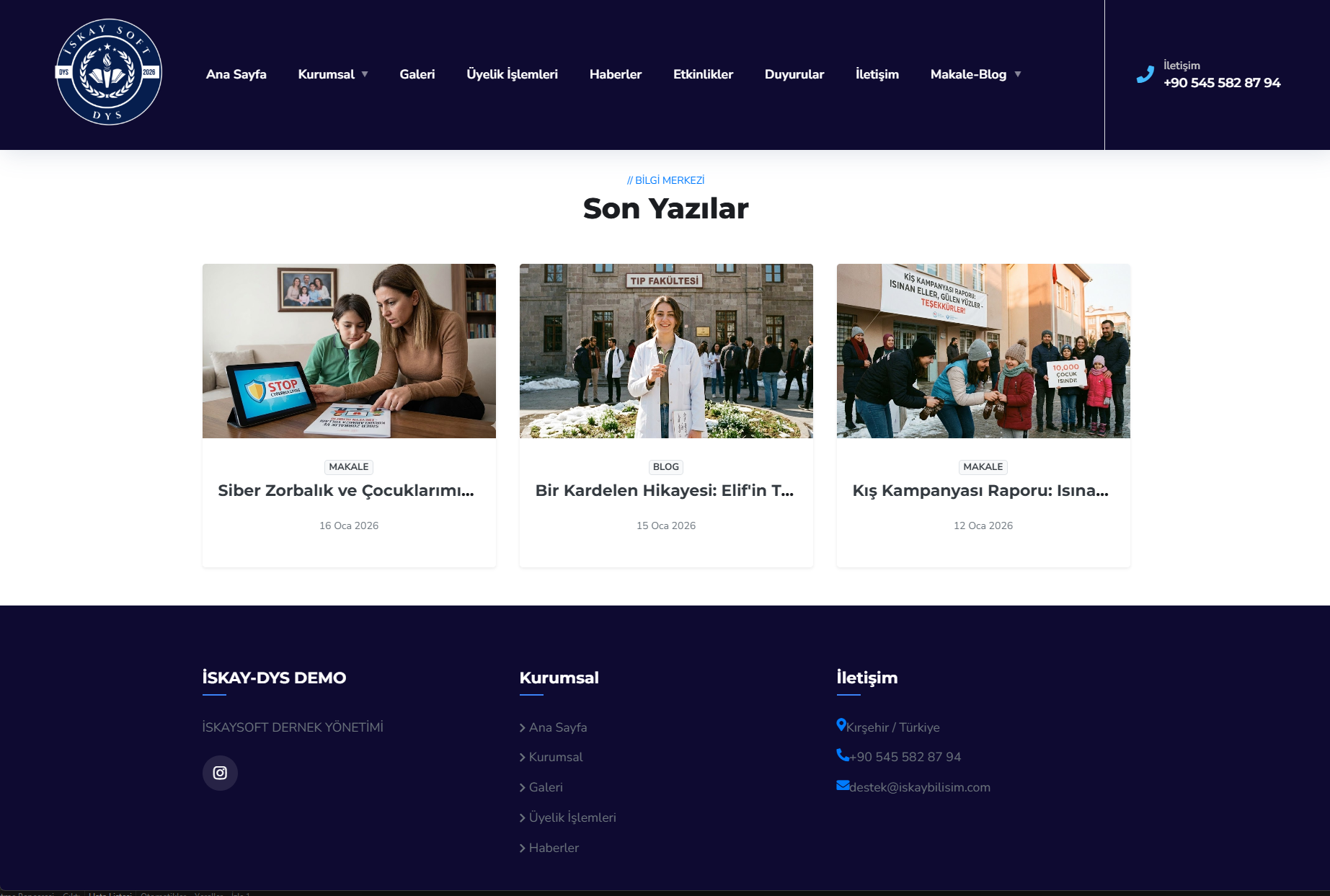 İSKAY SOFT Dernek Otomasyonu; hem dernek içi yönetim süreçlerinizi dijitalleştirir hem de kurumsal kimliğinizi yansıtan, tamamen dinamik ve Google dostu bir web sitesine sahip olmanızı sağlar.